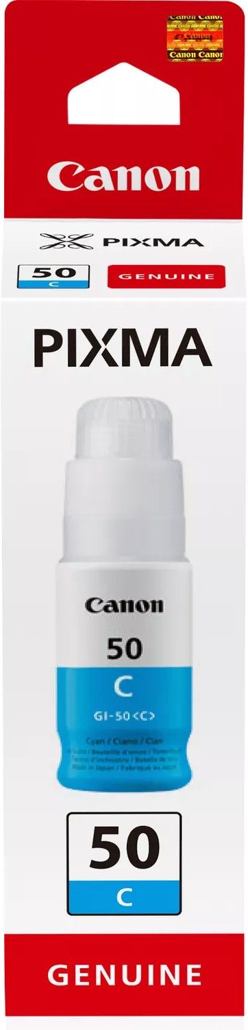 The Canon GI-50 Cyan Ink Bottle - 3403C001 is designed for high-volume printing, delivering consistent results with genuine Canon reliability.